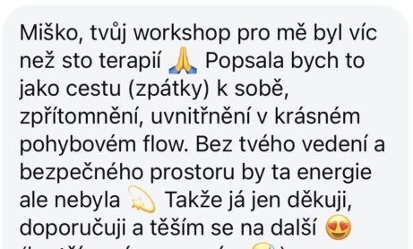 Sdílení je dobrovolné. Konkrétně tento workshop povedu více k pohybu než k mluvení. Workshopy, kde bude součástí i skupinový koučink, budou v jiném termínu.